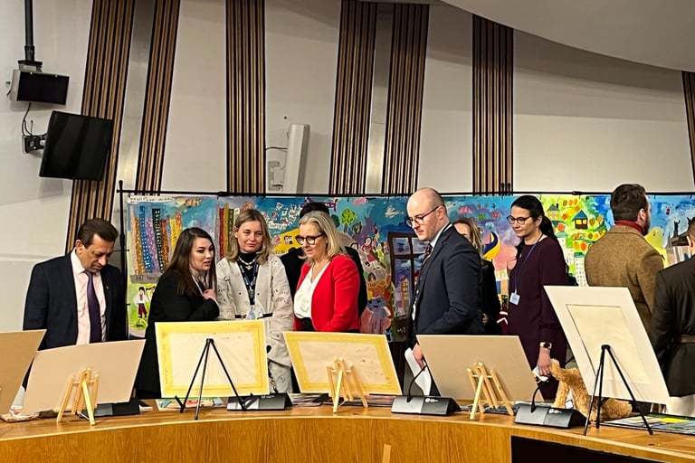 Once I asked why they had not tried to exhibit the children’s artwork outside Ukraine—apart from a Chicago one, attended by several senior US politicians. Nataliia answered plainly: they had no contacts, no funding, and - before all - no time. Their entire focus was on helping children. Since February 2022, when tens of thousands of terrified families fled to Lviv, they had been running sessions two to three times a week, every week. Their priority was simple and relentless: give displaced children a safe space to process trauma and begin to heal.